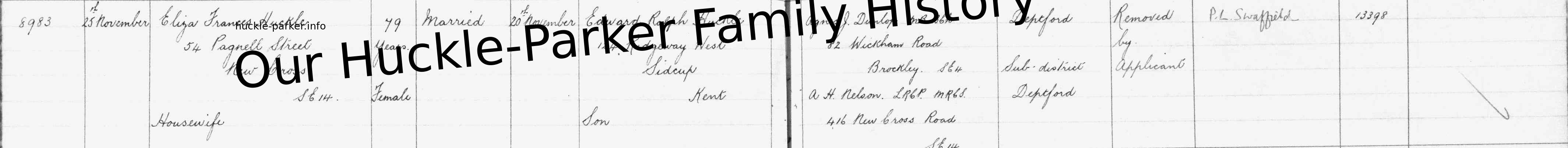 William George Huckle Birth: 1 January 1922 — 19 Knott St, Deptford SE8 Death: 13 September 1924 — 19 Bronze st Deptford |