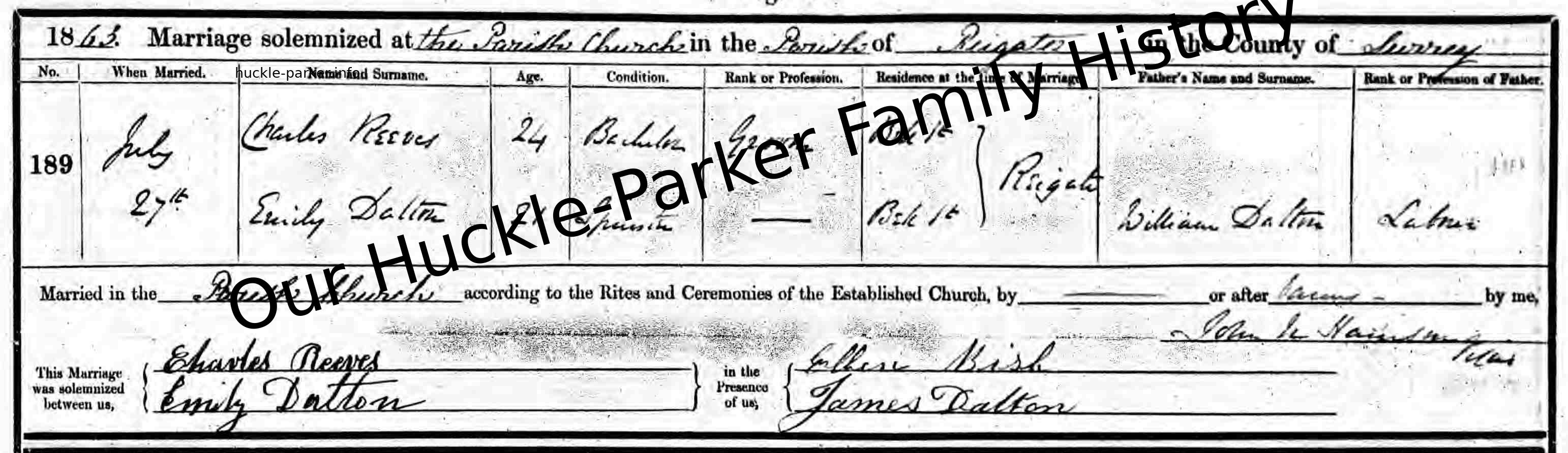 Emily Dalton Birth: 1841 — Bletchingley, Surrey Death: |