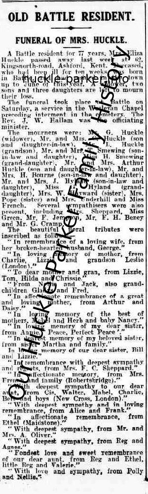 | Death of a sister | Annie Huckle 21 February 1919 (Age 26 years) Age: 22 Address: The Bungalow, Battle Hill, Battle |