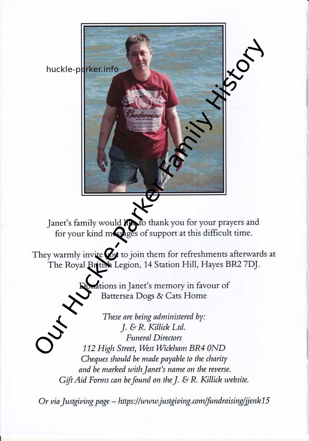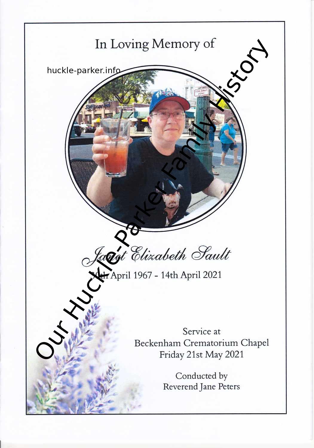 Janet Elizabeth Sault, daughter of Derek Sault and Sheila Mary Payne, was born on 30 April 1967 and died on 14 April 2021 in home at the age of 53 years.