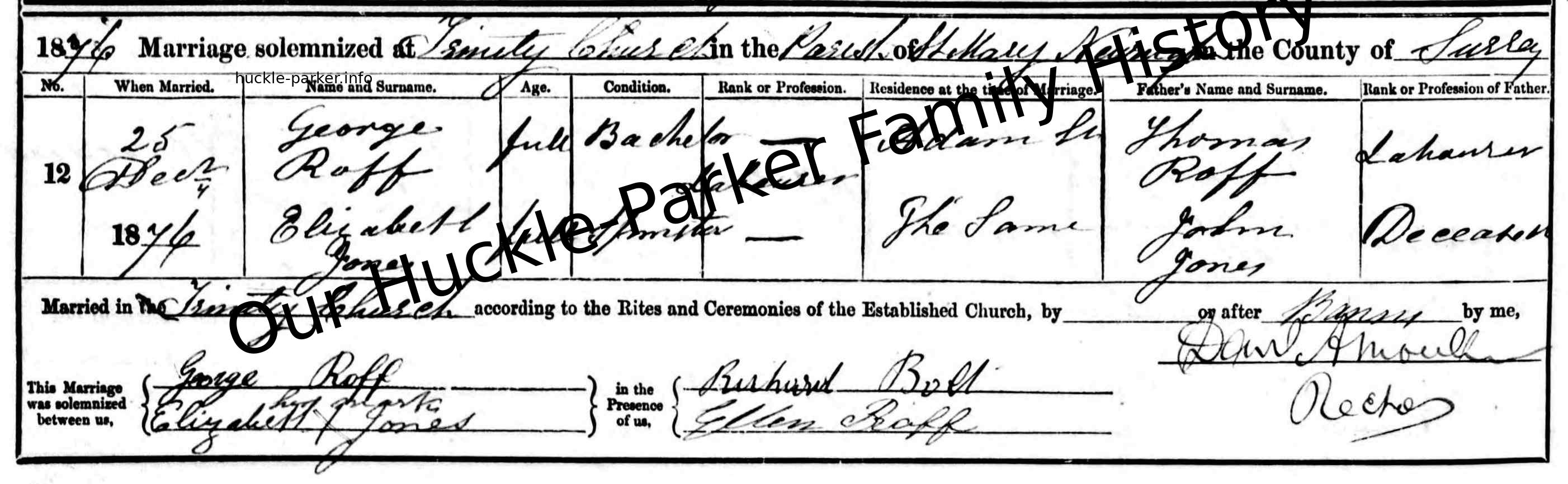 Marriage: 25 December 1876 — Trinity Church Newington Surrey |