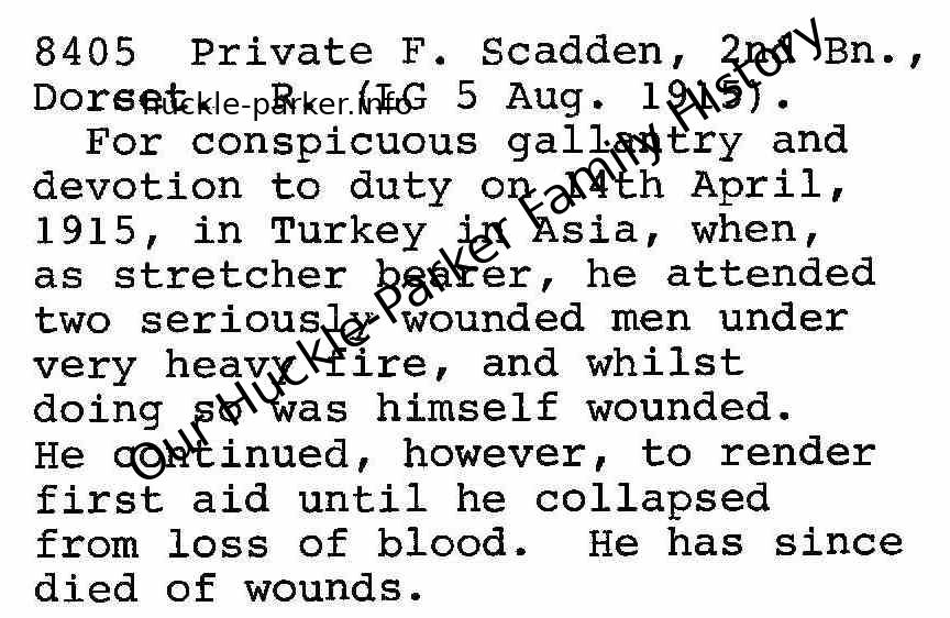 | Death of a brother | Frederick Scadden DCM April 1915 (Age 31 years) |