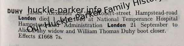 | Death of a husband | James Alexander Duhy 1 July 1946 (Age 69 years) Address: National Temperance Hospital